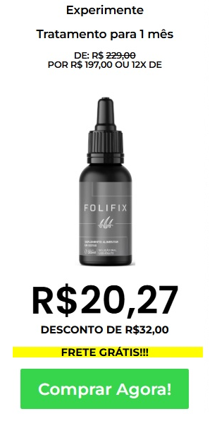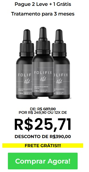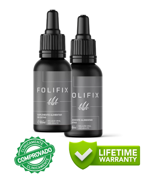 O Folifix é uma solução 100% natural, que bloqueia a queda do cabelo, calvície e restaura os folículos, além de acelerar a produção de novos fios, preenchendo as áreas calvas. Além disso, é considerado como seguro para uso da população em geral, sendo dispensado de registro conforme a RDC 240 de 26/07/2018 da ANVISA.